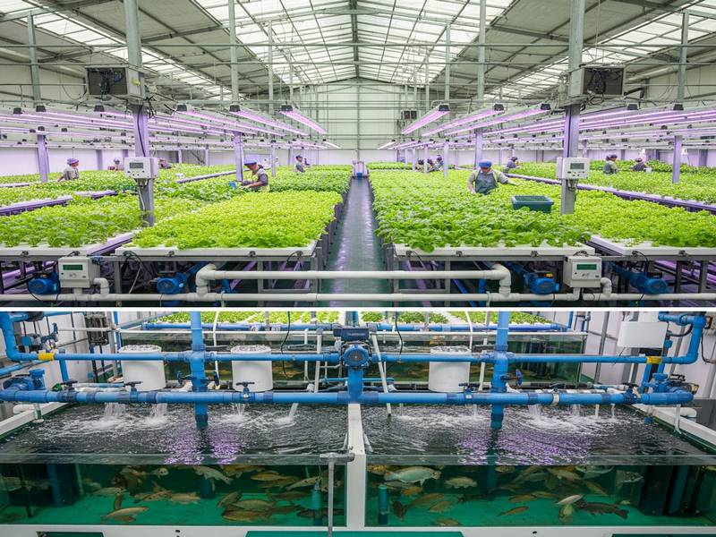 Efficacité hydrique et énergétique : Les systèmes de recirculation d'aquaculture (RAS) combinés avec des modules hydroponiques DWC ou NFT sont souvent privilégiés pour leur efficacité et leur capacité de production intensive.