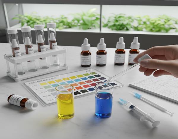 Kits de tests liquides (gouttes) : C'est la méthode la plus fiable et la plus précise pour l'aquaponie domestique. Un bon kit comprend les tests pour pH, ammoniaque, nitrites, nitrates, KH et GH. C'est un investissement initial, mais plus économique à long terme.